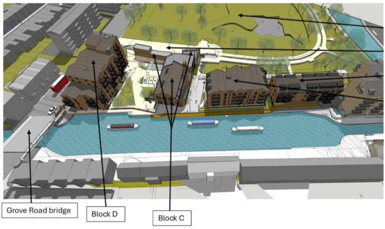 the proposed 66 flats and one small commercial space at Bow Wharf.